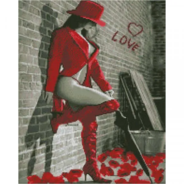 Алмазна картина Strateg ПРЕМІУМ Дівчина в червоному розміром 40х50 см (L-207)