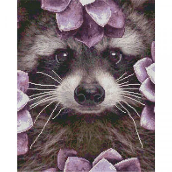 Алмазна картина Strateg ПРЕМІУМ Єнот серед квітів розміром 40х50 см (L-019)