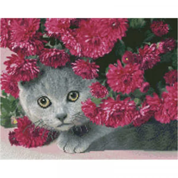 Алмазна картина Strateg ПРЕМІУМ Котик під квітами розміром 40х50 см (L-442)