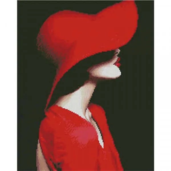 Алмазна картина Strateg ПРЕМІУМ Леді в червоному капелюсі розміром 40х50 см (L-136)