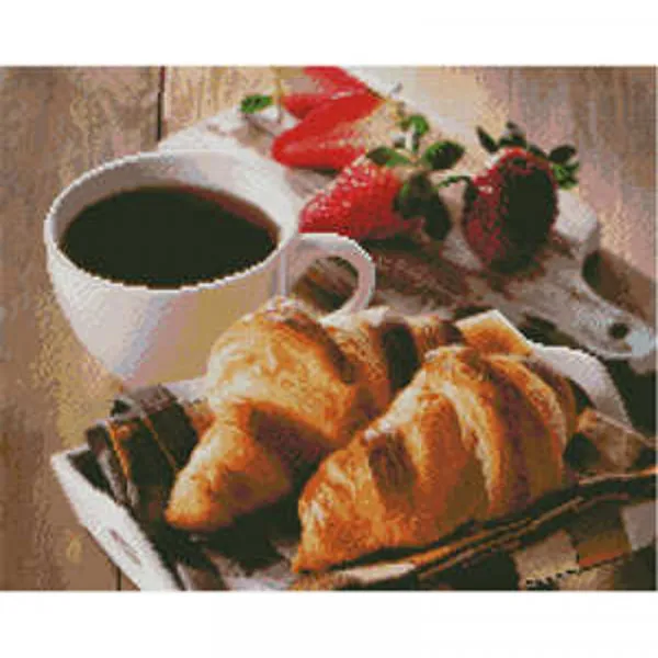 Алмазна картина Strateg ПРЕМІУМ Ранкова кава з круасанами розміром 40х50 см (L-433)