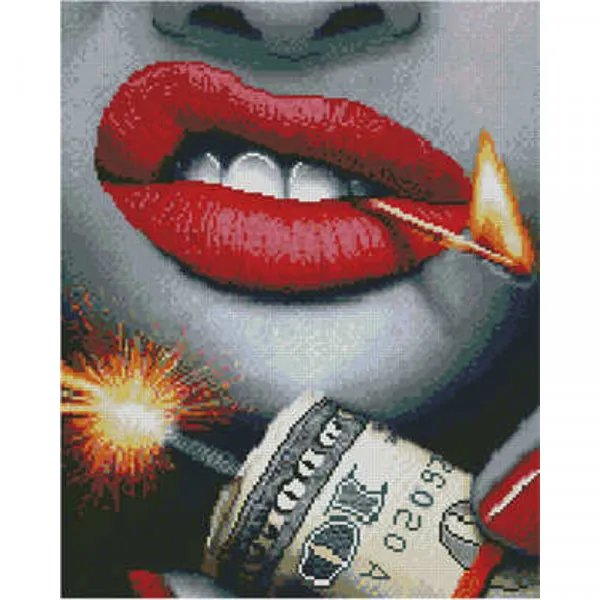 Алмазна картина Strateg ПРЕМІУМ Шалено-червоні губи розміром 40х50 см (L-029)