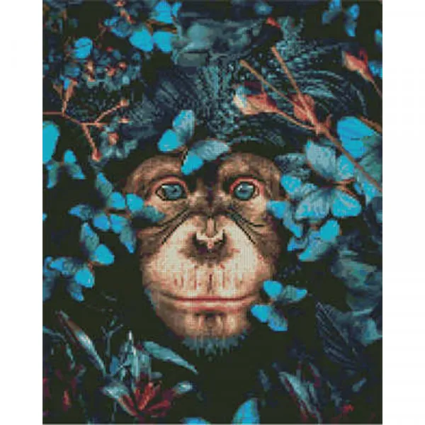 Алмазна картина Strateg ПРЕМІУМ Шимпанзе з метеликами розміром 40х50 см (L-009)