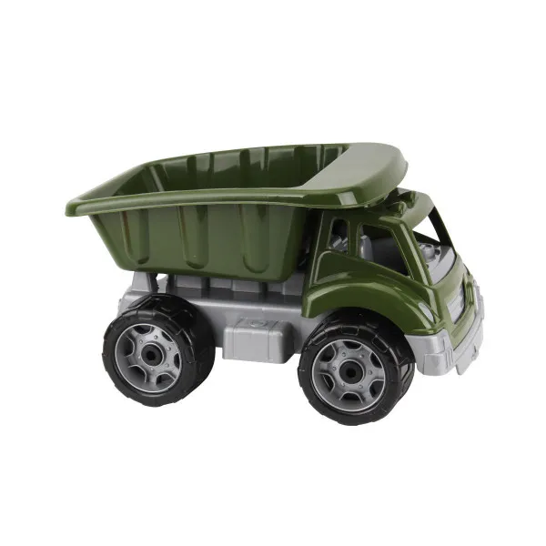 Міцні великі колеса з протектором забезпечують машині високу прохідність на різних дорогах. Так самоскид гарно їздить по траві, піску, та ґрунтовій дорозі.