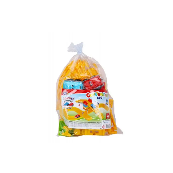 Іграшка "Конструктор ТехноК"– це 44 елементи, серед яких траси з перехрестями та поворотами, спуски, дорожні знаки та 2 машинки. Будівельні цеглини великі та зручні для маленьких діточок.