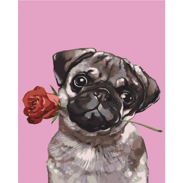 Картина за номерами Мопс із трояндою 30х40 см SS-6403