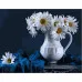 VA-0547 у білій вазі" від ТМ Strateg – це творча ідея з інструкцією для вас. Ви намалюєте букет ромашок у фарфоровій вазі на фоні синього оксамиту.