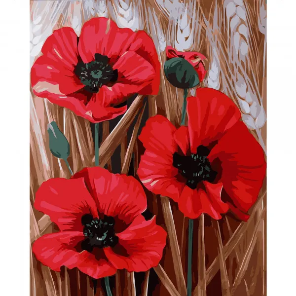 Бажаєте поєднати творчість із грою? Візьміть інструкцію та зафарбуйте поле кольором, що відповідає цифрі. Нескладно, правда? Не поспішайте, намагайтеся дотримуватися меж полів і не змішуйте кольори. Результат вас здивує. Вітаємо, ви намалювали справжню картину. Так-так, хоч можливо, ви і не художник. Картина своїми руками – чудовий відпочинок для вас, вона подарує радість творчості та гарантовано успішний результат. Вона стане прикрасою інтер'єру та несподіваним сюрпризом для Ваших друзів. VA-1680 "Три червоні квітки маку" від ТМ Strateg - це творча ідея з інструкцією для вас. Ви намалюєте три яскраво червоні квітки, що ростуть у маковому полі. /p>