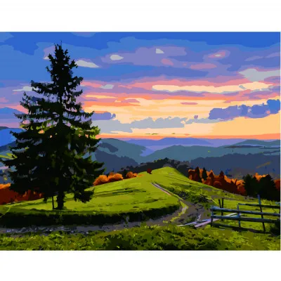 VA-2732 "Вечірній краєвид" від ТМ Strateg - це творча ідея з інструкцією для вас. Ви намалюєте мальовничий краєвид в горах на заході сонця.