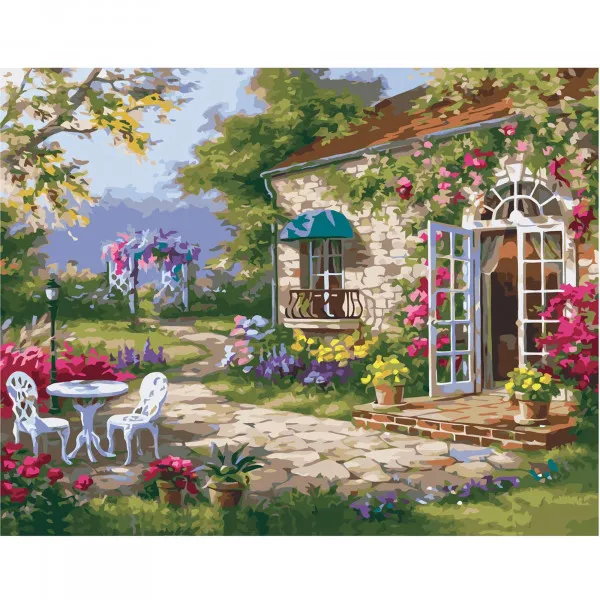 VA-2123 "Заміський будиночок" від ТМ Strateg - це творча ідея з інструкцією для вас. Ви намалюєте мальовничий заміський будиночок, порослий квітами та зеленню. Вік: 10+.