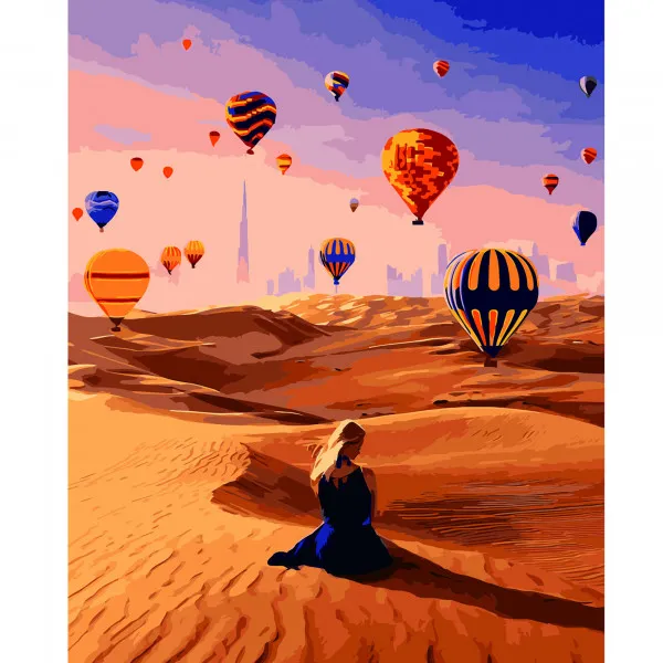 Картина за номерами Повітряні кулі серед пустелі 40х50 см VA-2627