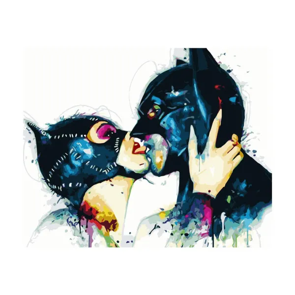 Бажаєте поєднати творчість із грою? Візьміть інструкцію та зафарбуйте поле кольором, що відповідає цифрі. Нескладно, правда? Не поспішайте, намагайтеся дотримуватися меж полів і не змішуйте кольори. Результат вас здивує. Вітаємо, ви намалювали справжню картину. Так-так, хоч можливо, ви і не художник. Картина своїми руками – чудовий відпочинок для вас, вона подарує радість творчості та гарантовано успішний результат. Вона стане прикрасою інтер'єру та несподіваним сюрпризом для Ваших друзів. «Жінка-кішка та Бетмен» (арт. VA-3017) від ТМ Strateg – це творча ідея з інструкцією для вас. На картині ви намалюєте Жінку-кішку і Бетмена, що цілуються, в стилі поп-арт. Вік: 10+. Розмір картини: 40х50 см. Орієнтація: горизонтальна. Рівень складності: 3 Жанр: портрет. Комплектація: контейнери з акриловими фарбами (25шт.); синтетичні пензлики (3 шт.), зразок картини; полотно із розбивкою зображення за номерами; підрамник; кріплення; Інструкція. Вага: 1 кг.