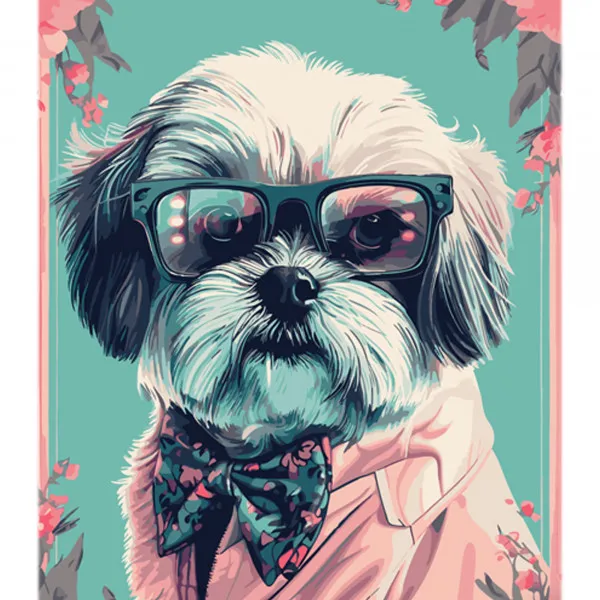 Картина за номерами Strateg Елегантний йорк з окулярами на кольоровому фоні розміром 40х50 см (MZ024)