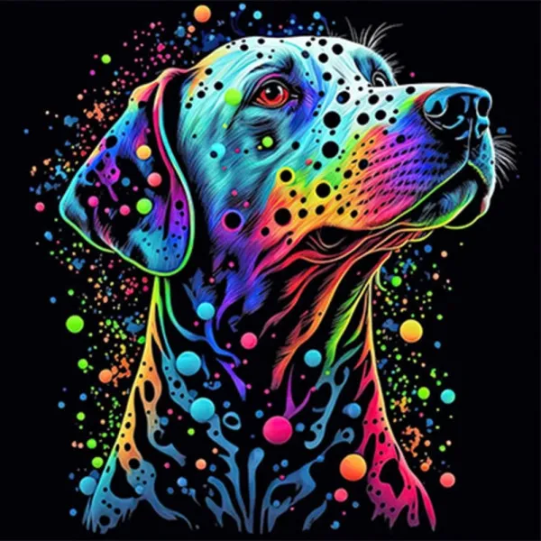 Картина за номерами Strateg ПРЕМІУМ Барвистий пес на чорному фоні розміром 40х40 см (AV4040-5)