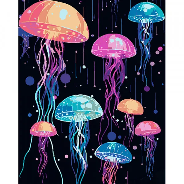 Картина за номерами Strateg ПРЕМІУМ Яскраві медузи на чорному фоні розміром 40х50 см (AH1076)