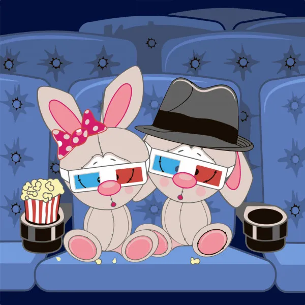 Картина за номерами Strateg ПРЕМІУМ Зайчата в кінотеатрі з лаком та з рівнем розміром 30х30 см (ES-0804)