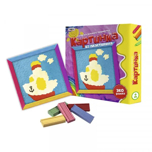 - Комплектація: пластилін, це рамка, малюнок