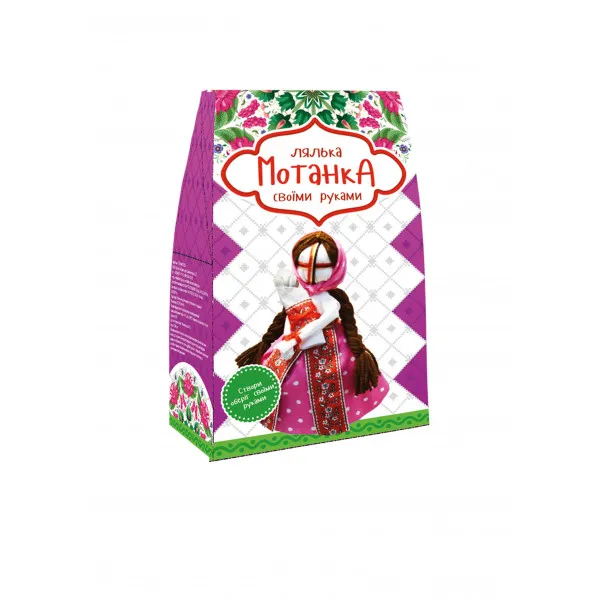Лялька мотанка – давній український оберіг та найпоширеніша іграшка. Яскравих і складних лялечок наділяли символічним значенням, вважали невід'ємною частиною будинку. Для малюків створювали найпростіші моделі з одного шматочка тканини та хліба. Мотанка своїми руками "Нянька" (4014, Strateg) - це можливість створити яскраву ляльку своїми руками, наділити її своїм потаємним змістом. Набір включає тканину, наповнювач, бусинки та стрічки для прикраси. Ця модель може виконувати роль нянечки, стежити за дітьми у будинку. Готова лялечка немає обличчя – спочатку мотанки були безликими. Вважалося, що ця особливість дозволить їй нести лише добрий початок і не впустить злих духів. Зробити мотанку легко, адже головне у цьому процесі – вкласти в неї частинку своєї душі. Створена фігурка прикрасить будинок та стане цінним оберегом. Раніше ляльок робили кожному члену сім'ї, передаючи їй головні риси господаря. У процесі рукоділля розвивається посидючість та уважність, створення мотанки стане захоплюючим заняттям для всієї родини.
