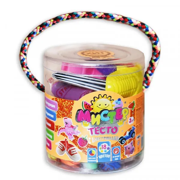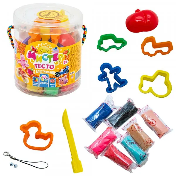 Пластичне тісто – корисне придбання для малюка, воно розвиває уяву та дрібну моторику крихти. До того ж, це чудовий спосіб самостійно зробити найкращу іграшку. Набір для ліплення «Містер Тісто з блискітками» (71102, Strateg) стане чудовою знахідкою для шанувальників фігурок із пластиліну та подібних субстанцій. Він дуже яскравий та барвистий – у наборі цілих 18 кольорів різнокольорового тіста з блискітками. А ще в ньому є інструкція, пластикові формочки та зручний стек для формування фігурок. Кожен шматочок тіста пахне смачними фруктами, їх можна легко змішувати та втілювати будь-які фантазії! До готової фігурки можна прикріпити очі, які теж є в комплекті. Тісто не забруднює руки і є чудовим замінником звичного пластиліну. Дитині сподобаються яскраві кольорові відтінки та незвичайний запах. Гра з тестом допоможе надовго зайняти малюка, подарує йому хвилини радості та спокою! Виріб можна поставити на стіл або поличку, щоб милуватися ним довгий час. А складати всі інструменти і тісто, що залишилося, дуже зручно в круглу коробочку з мотузкою, в якій поставляється набір.