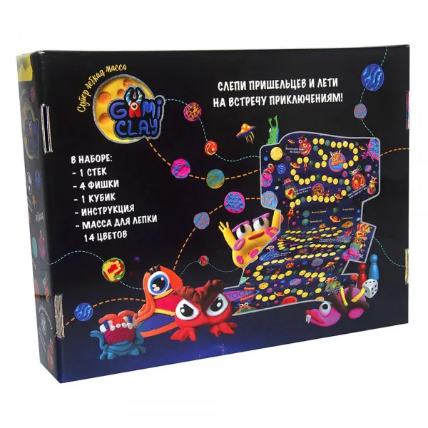 "Gumi Clay" - ця гра дуже яскрава, тому точно зможе привернути увагу вашої дитини! Різнокольорова маса для ліплення допоможе малюкові пізнати нові кольори та створити свій власний світ. Для початку гри необхідно перетворити коробку на ігрове поле, зліпити персонажів або вибрати собі фішку. Гравці по черзі кидають кубик, визначаючи кількість ходів та просуваються по полю. Перемагає той, хто першим дістанеться фінішу. Гра позитивно впливає творчі здібності, посидючість і досягнення цілей.