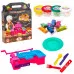 - Комплект: 4 ємності з тестом по 100 гр., 8 паличок тіста по 20 гр., 2 ємності для зберігання, столик-барбекю, ложечка, ніж, 2шт. формочок, виделка, тарілка;