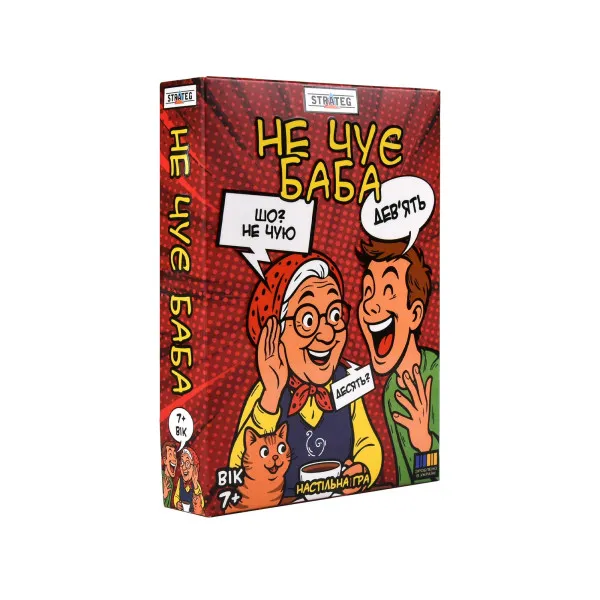 «Не чує баба» — весела настільна гра на відгадування слів по губах. У ній гравці намагаються зрозуміти слова без жодного звуку. Це чудовий спосіб перевірити, наскільки добре ви розумієте одне одного без слів.