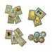 - Комплект: 72 картки, 4 фішки-фігурки, 90 жетонів, 99 монет, ігрове поле, кубик, фарби, пензлик, інструкція;