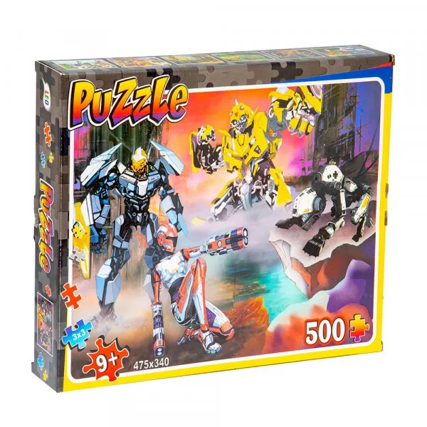 Створити привабливу картину-постер з бойовими роботами-трансформерами та їх битви у фантастичному світі допоможе пазл «Роботи» (Strateg 22202), у процесі з'єднання елементів пазла в єдину картину дитина познайомиться з різними видами роботів, їх зовнішнім виглядом та озброєнням.